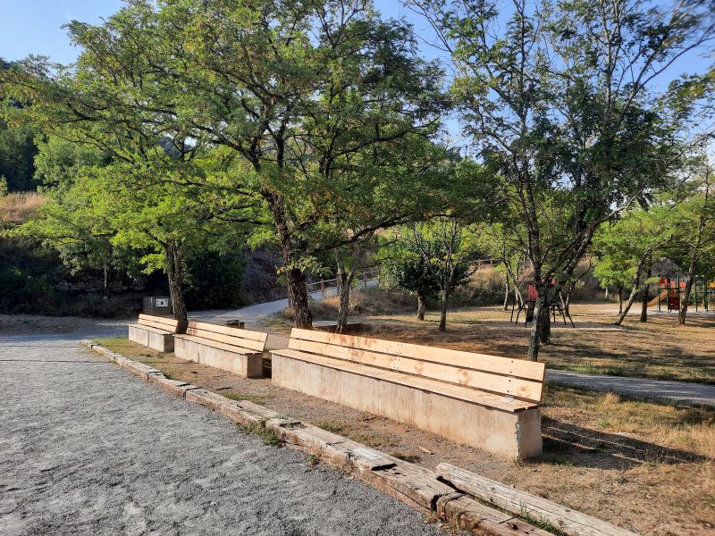 - Mise en place de dossiers et assises en bois sur les bancs existants,