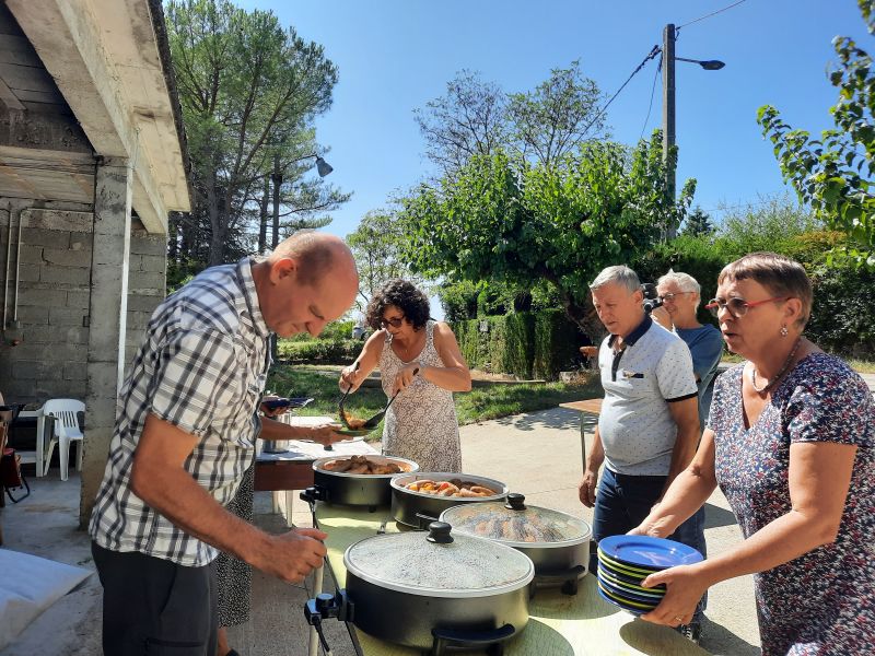 C’était un bon moment de convivialité, de retrouvailles avec d’anciens voisins. Les amis de la fratrie de Léonce, la communauté des frères maristes, étaient également présents. Florence et Stéphane, ses neveux l’ont fait en sa mémoire. Ils ont accueilli les voisins et amis avec générosité, offrant ce délicieux repas à tous les nombreux convives. Une partie de pétanque sur le terrain de boules familial a prolongé cette chaleureuse rencontre.