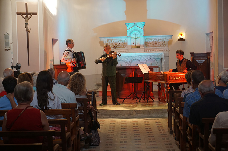 Vendredi 18 juillet, en fin d'après-midi, l'association Uzer en Fête a organisé dans l'église Saint-Pierre, un concert avec l'ensemble Magie Tzigane, composé d'un trio de musiciens. Ils ont interprété avec brio des airs qui invitent au voyage à travers des thèmes langoureux ou des rythmes endiablés, de la Russie à la Hongrie, des Balkans à l'empire Ottoman.