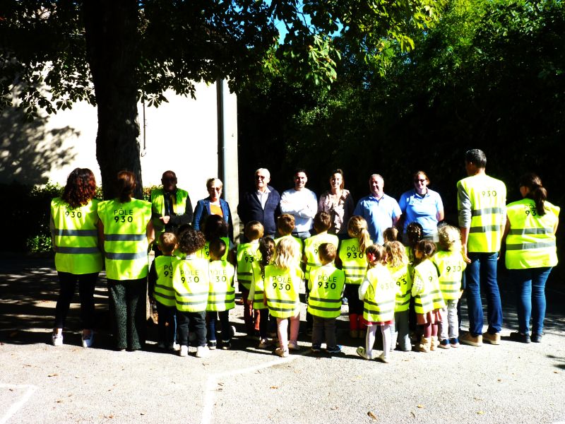 Lundi 29 septembre après-midi, les responsables et personnels des entreprises du Pôle 930, installées à Uzer, sont venus à l’école du village. Ensemble, ils ont offerts des gilets de sécurité jaunes fluorescents, destinés aux écoliers et leurs accompagnateurs, en présence du maire et d'adjoints. Ces vêtements bien visibles seront utilisés lors des sorties pédestres, notamment pour la randonnée pédagogique que les enfants font chaque semaine avec la maîtresse.