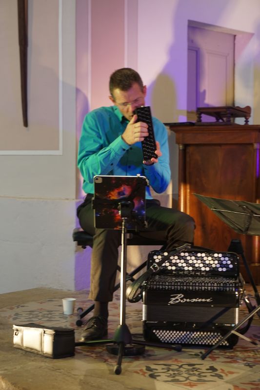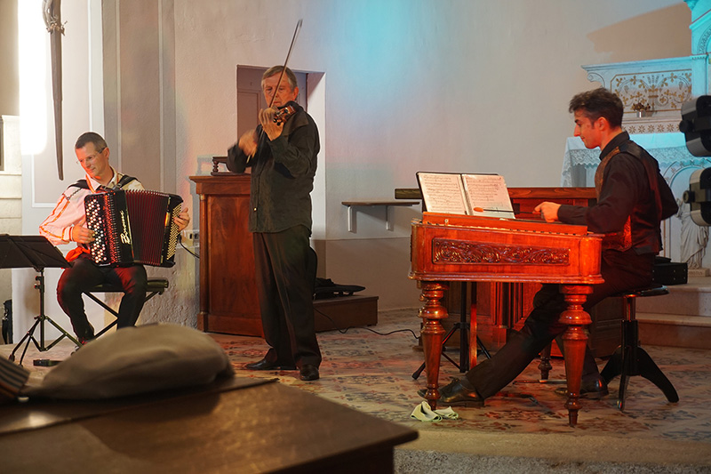 A l'issue du concert, le pot de l'amitié offert par l'association à tous les participants, a permis de riches échanges avec les artistes : William Garcin (violon), Jérémy Vannereau (accordéon) et Cyril Dupuy (cymbalum), très appréciés par tout le public.