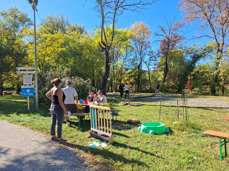 - 2 composteurs supplémentaires, en bois, fabriqués par le centre de Béthanie de Lachapelle sous Aubenas, sont en place dans le lotissement du Ranc de Guilhaumet, pour tous les riverains du quartier, ainsi que les résidents,